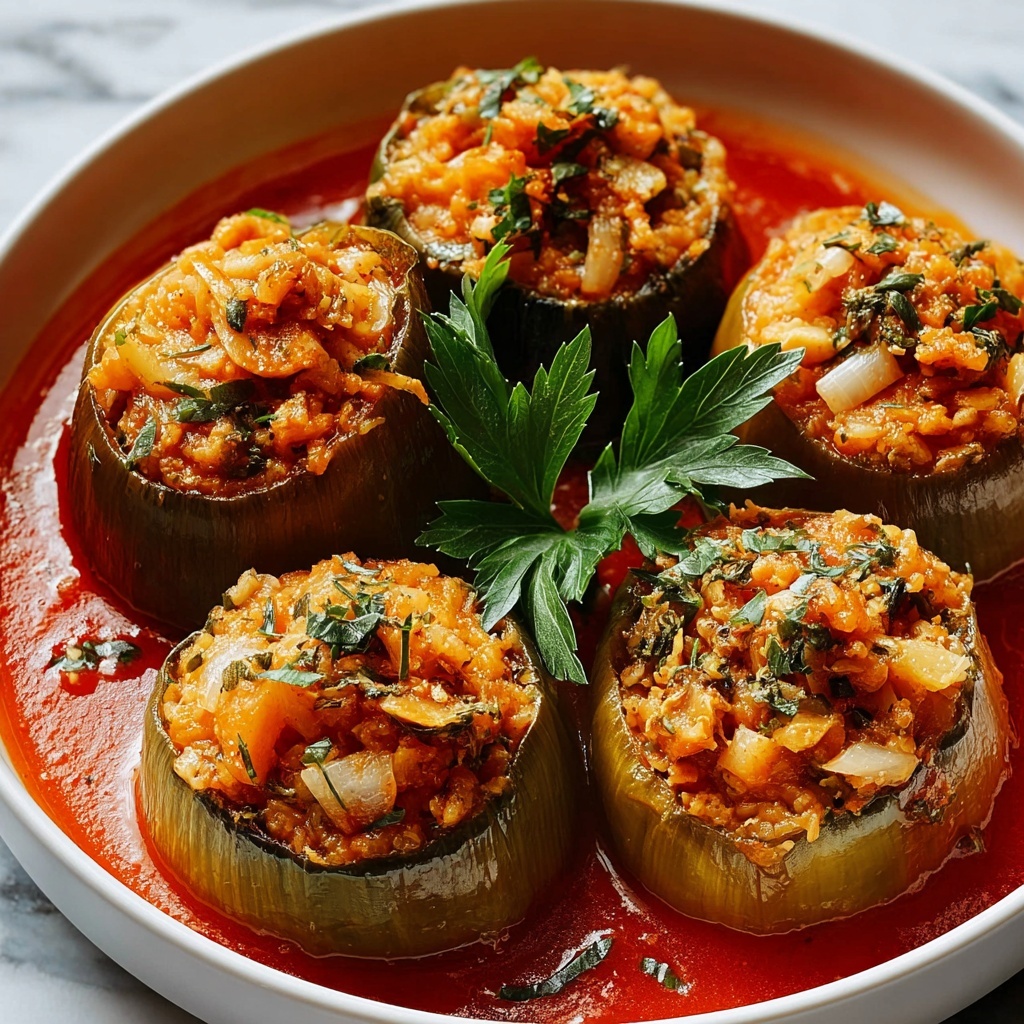 These Irresistibly Delicious Lentil and Rice Stuffed Cabbage Rolls combine tender cabbage leaves filled with a hearty mixture of cooked lentils, rice, sautéed onions, and garlic, seasoned with fresh herbs and spices, then baked under a flavorful tomato sauce topping. This wholesome dish offers a comforting, nutritious meal perfect for a family dinner or meal prep.