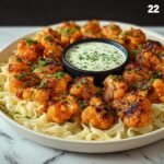 Buffalo garlic chicken bites pair like a dream with cool, creamy sides such as celery sticks, carrot batons, or a fresh cucumber salad. If you want something more filling, buttery corn on the cob or garlic mashed potatoes make excellent companions that balance the fiery bites perfectly.