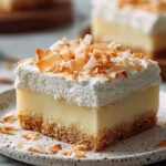 Island Dream Coconut Cream Bars are a luscious tropical treat featuring a buttery crust topped with a creamy, sweet coconut filling. Finished with a layer of fluffy whipped topping and toasted coconut garnish, these bars are perfect for dessert lovers craving a taste of the islands.