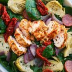 Place the sliced grilled chicken atop the salad, then drizzle with your chosen Italian dressing. Toss everything gently but thoroughly to coat evenly, ensuring each ingredient gets its share of that flavorful Italian dressing, which is the heart and soul of this recipe.