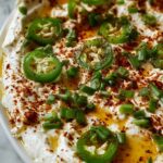 - Serve and Garnish: Transfer the creamy jalapeño dip to a serving bowl. Sprinkle chili flakes on top for a touch of extra heat and visual appeal. Serve immediately with tortilla chips, crackers, or fresh vegetable sticks for dipping.