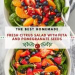 A refreshing and vibrant Juicy Citrus Salad featuring a medley of grapefruit, Cara Cara orange, and mandarine orange, tossed with mixed baby greens, pomegranate seeds, and crumbly feta cheese. Dressed in a tangy lemon and red wine vinegar vinaigrette infused with garlic and shallots, this salad is a perfect light and healthy dish for any season.