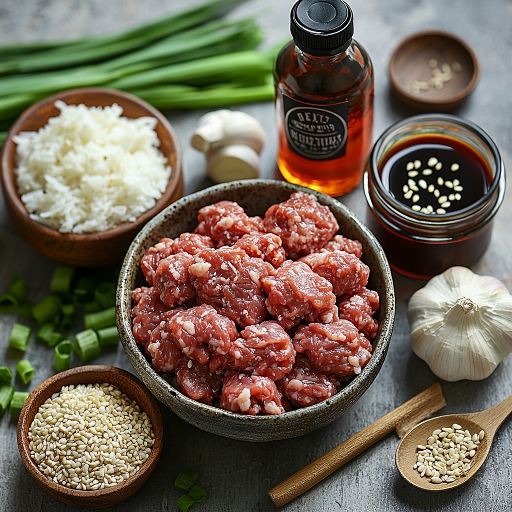 This Korean Ground Beef Bowl (25-Minutes) Recipe is built on a handful of simple ingredients that pack a powerful punch of flavor and texture. Each component plays a vital role—ground beef brings rich savoriness, soy sauce adds umami depth, sesame oil infuses a nutty aroma, and fresh garlic and ginger create that signature Korean zest.