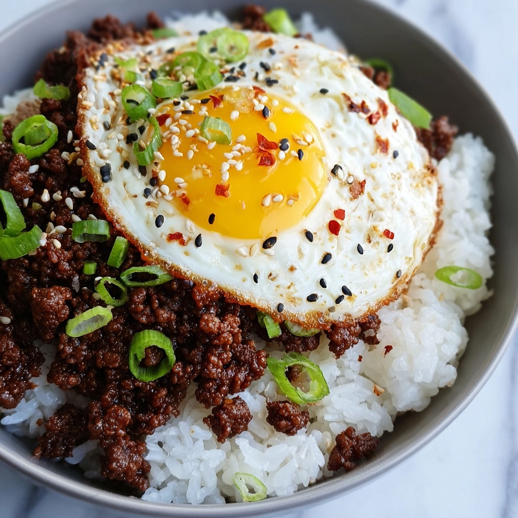 Finish each bowl with a sprinkle of chopped green onions. Optional extras like toasted sesame seeds or a sunny fried egg can take this Korean Ground Beef Bowl (25-Minutes) Recipe over the top in both taste and presentation.