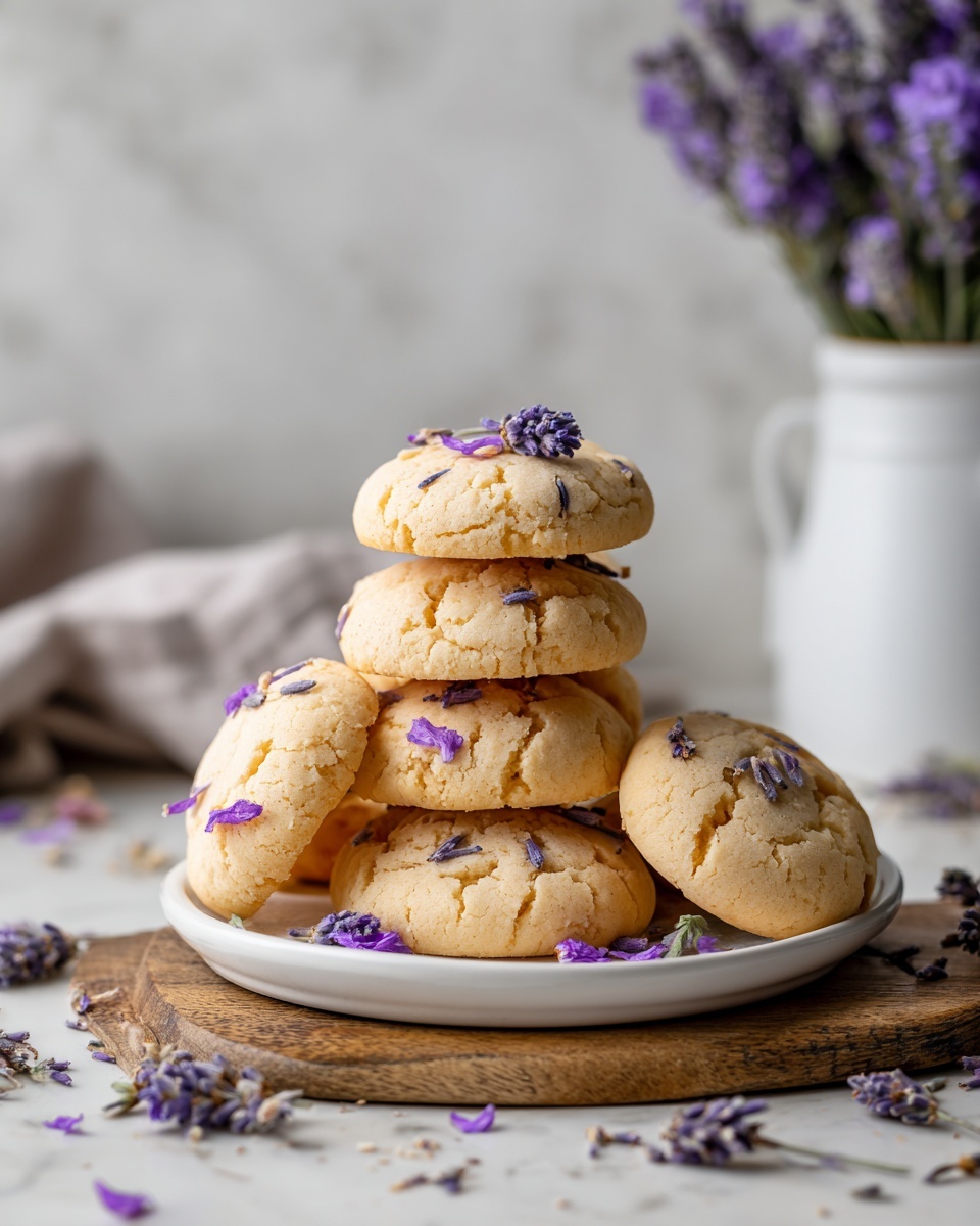 Add a delicate sprinkle of finely ground lavender sugar just before serving for an extra pop of floral aroma and a subtle crunch. You could also dust these cookies lightly with powdered sugar for a sweet finish that looks beautiful on any plate.