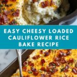 A comforting and cheesy Loaded Cauliflower Rice casserole that’s low-carb and packed with flavor. This dish combines steamed cauliflower rice with creamy sour cream, heavy cream, ranch seasoning, and plenty of melted cheese, topped with crispy bacon bits for an irresistible side or main dish.