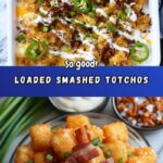 - Serve: Serve the loaded smashed totchos hot, topped with dollops of sour cream and garnished with thinly sliced green onions or chives for freshness and flavor.