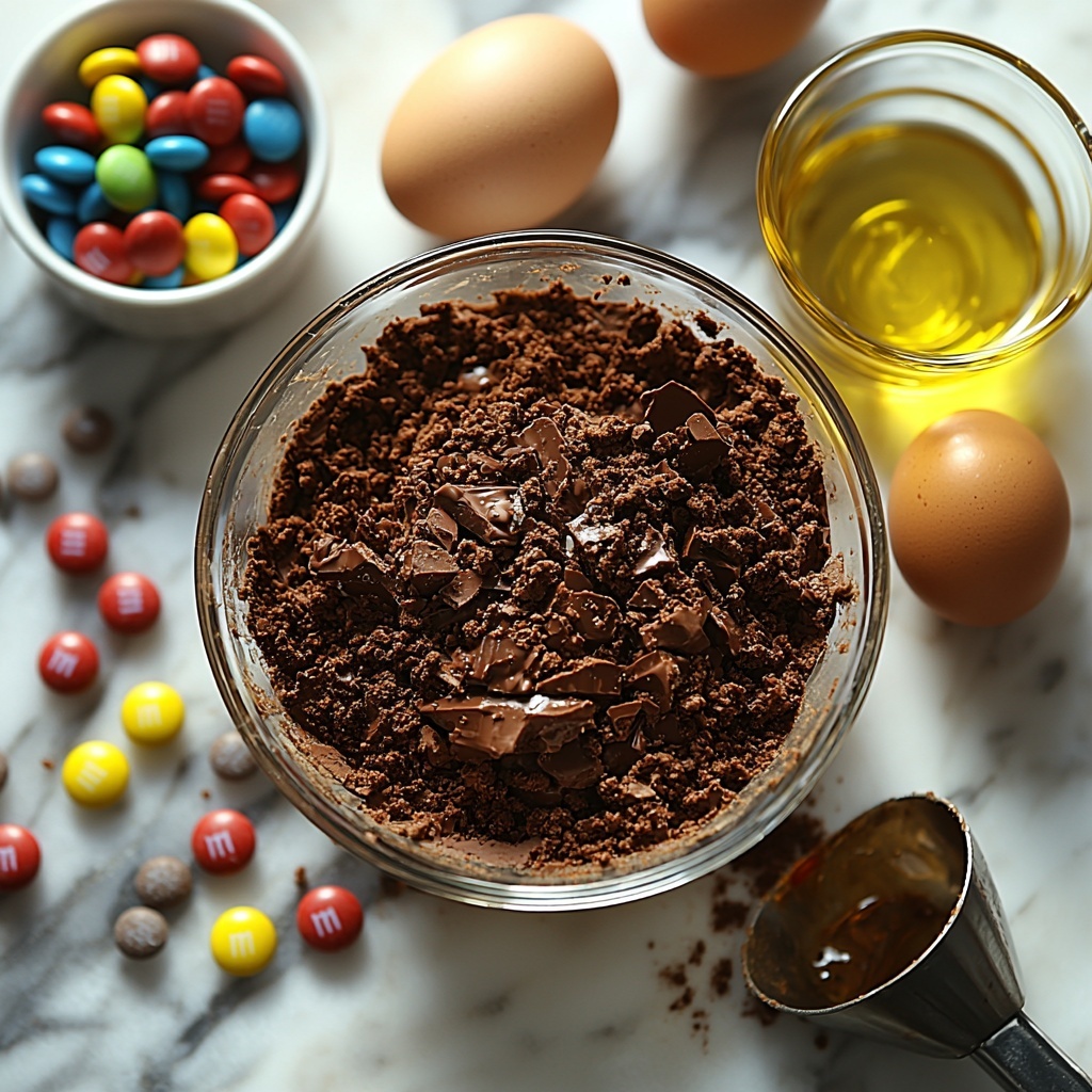 Gathering your ingredients is a breeze for this recipe because each one plays a crucial role in building the perfect M&M Chocolate Cake Batter Cookies. The chocolate cake mix creates that rich, cake-like base while eggs add moisture and help bind everything together. Butter and oil bring that melt-in-your-mouth softness and richness, and of course, the M&Ms add fun crunch and vibrancy.