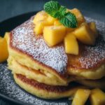 For a party-worthy presentation, layer your mango pancakes with whipped cream and mango chunks in a clear glass for elegant parfaits. Alternatively, serve them stacked high with alternating layers of coconut-flavored yogurt or mascarpone cheese for a luxurious treat that looks as stunning as it tastes.