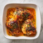 Place the seasoned chicken into the prepared casserole dish and top each breast with a small dice of butter. The butter melts as the chicken bakes, adding luscious richness and keeping the meat moist. Bake in the 400°F oven until the internal temperature reaches 165°F, approximately 18 to 20 minutes. For an irresistible finish, broil the chicken for 1 to 3 minutes to achieve a lightly crisped and golden top. This step seals in flavor and gives a lovely visual appeal.