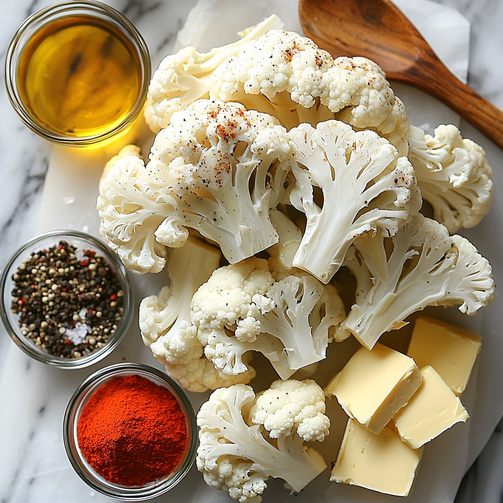 The beauty of this Oven Roasted Cauliflower Recipe lies in its straightforward ingredients that each play a vital role in creating a balanced, tasty dish. From the robust olive oil to the melting butter, every component enhances flavor and texture perfectly.