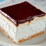 - Add Chocolate Topping: Carefully pour the warm chocolate topping evenly over the set cream layer. Return the dessert to the refrigerator and chill until fully set, usually several hours or overnight.