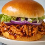 This Pulled Chicken Sandwich recipe delivers tender, flavorful shredded chicken slow-cooked in a smoky, spicy BBQ sauce. Perfect for casual meals or gatherings, this easy crock pot recipe combines a blend of spices, jalapeño heat, and tangy Dijon mustard for a delightful sandwich filling that cooks itself to perfection.