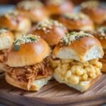 These Pulled Pork Mac and Cheese Sliders combine creamy, cheesy macaroni with savory pulled pork, all nestled between buttery slider buns for a delicious party appetizer or comforting meal. Featuring a rich cheese sauce, tender pulled pork, and a crispy, caramelized top, these sliders are sure to be a crowd-pleaser.