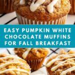 Delight in the cozy flavors of these Pumpkin White Chocolate Muffins, perfect for breakfast or an afternoon treat. Moist and tender, these muffins combine warm pumpkin spice with sweet bursts of white chocolate chips for a deliciously comforting bite.