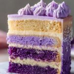 - Assemble the cake: Once the cakes are fully cooled, level the tops if necessary. Stack the layers from darkest to lightest purple, spreading a thin layer of frosting between each layer for stability and flavor.