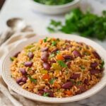 A hearty and flavorful Red Beans and Rice recipe featuring tender red kidney beans simmered with aromatic vegetables and spices, served over fluffy white rice. This classic dish is perfect for a comforting meal and easy to prepare with either dried or canned beans.