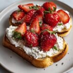 Enjoy a delightful and elegant breakfast or snack with Roasted Strawberry Whipped Ricotta Toast. This recipe features sweet, caramelized strawberries roasted to perfection and a smooth, creamy whipped ricotta spread, all served on toasted crusty bread. Finished with a touch of honey and fresh herbs, it offers a perfect balance of flavors and textures in under 35 minutes.