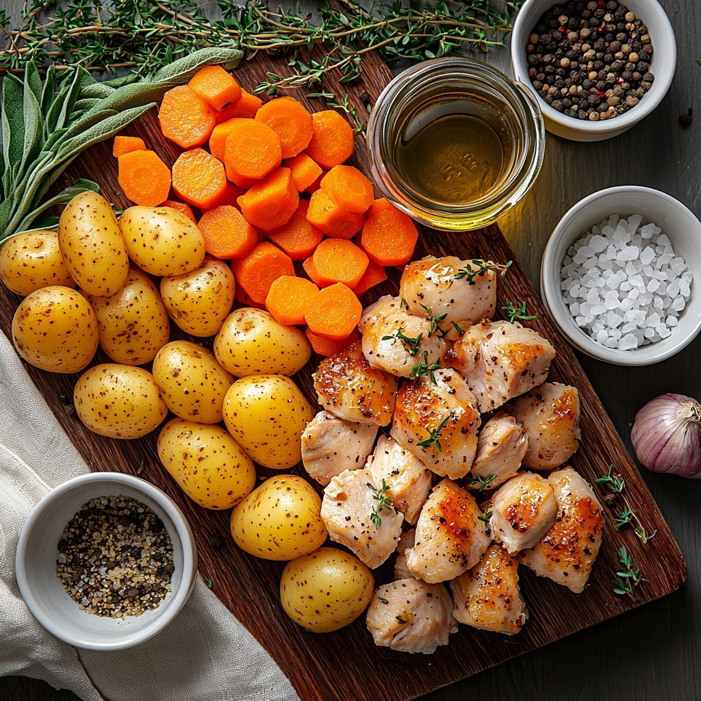 This Rustic Chicken & Potato Stew with Carrot & Herbs Recipe shines because of its simple yet essential ingredients. Each one plays a crucial role—providing balanced flavors, hearty textures, and that beautiful rustic color that makes the stew look as good as it tastes.