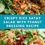 A vibrant and crunchy Satay Crispy Rice Salad combining golden crispy rice with fresh vegetables and a creamy, tangy peanut satay dressing. This easy-to-make dish is perfect as a light main course or a refreshing side, featuring a delightful blend of textures and bold flavors.