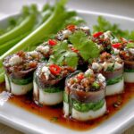 These rolls shine best when garnished with extra herbs like Thai basil, mint, or cilantro sprinkled on top. A light drizzle of hoisin or a side of spicy peanut sauce can take the experience from great to unforgettable. The freshness of the herbs complements the meaty filling, adding layers of complexity in every mouthful.