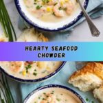 This hearty and comforting Seafood Chowder recipe combines a delicious medley of seafood with creamy potatoes, sweet corn, and bacon in a flavorful broth. Perfect for a cozy meal, this chowder features a rich blend of flavors enhanced by garlic, chardonnay, and fresh herbs, served best with crusty or garlic bread on the side.