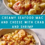 This Seafood Mac & Cheese Recipe freezes beautifully. Portion it into freezer-safe containers and freeze for up to 2 months. Be sure to let it cool completely before freezing. Thaw overnight in the fridge before reheating.