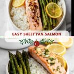 This Sheet Pan Lemon Salmon recipe delivers a simple, healthy, and flavorful meal perfect for busy weeknights. Succulent salmon fillets and tender asparagus are roasted together on one pan, infused with a zesty lemon-garlic butter sauce. Finished under the broiler for a golden crisp top, this meal is both elegant and easy to prepare. Served with cooked rice and garnished with fresh lemon slices and parsley, it offers a wholesome and delicious dinner in under 30 minutes.