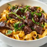 To reheat, gently warm the leftovers on the stove over medium-low heat, stirring occasionally and adding a bit of water or beef stock if needed. Avoid overheating as it can cause the noodles to become mushy. Reheating in the microwave works too—just cover loosely and heat in short intervals, stirring between each.