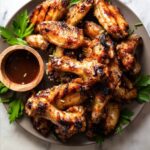 Garnishes like freshly chopped parsley or green onions add a pop of color and fresh flavor that brighten the rich smokiness of the wings. If you want a kick, sprinkle some crushed red pepper flakes or serve with lemon wedges to squeeze over the top for a nice contrast.