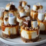 - Add Toppings: Place a few mini marshmallows on each cheesecake bite and drizzle melted white chocolate over the marshmallows for added flavor and decoration.
