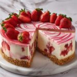 To make this cheesecake truly pop, a dusting of confectioners’ sugar adds a pretty snowy effect, while fresh strawberries bring vibrant color and natural sweetness. You can also drizzle extra strawberry sauce or add a sprig of fresh mint for an elegant touch.