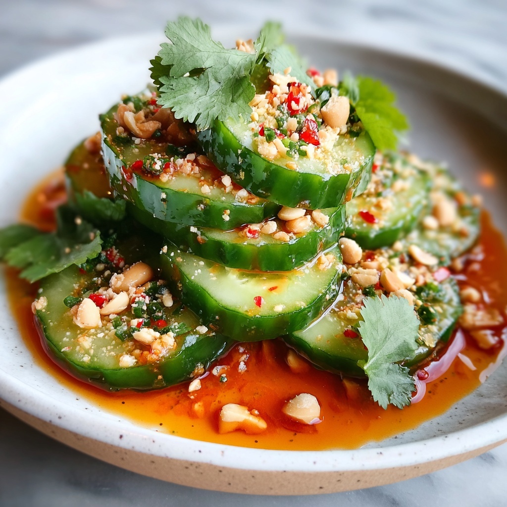 A refreshing and flavorful Spicy Peanut Cucumber recipe featuring crisp cucumbers filled with a creamy, spicy peanut sauce. This no-cook dish is perfect as a light appetizer or snack, combining Asian-inspired ingredients like soy sauce, chili garlic sauce, sesame oil, and fresh ginger for a delightful balance of sweet, spicy, and tangy flavors.