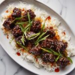 - Serve: Spoon the glazed beef bites over warm jasmine or basmati rice. Garnish with thinly sliced scallions and, if desired, sprinkle crushed peanuts or sesame seeds on top for added crunch and contrast.