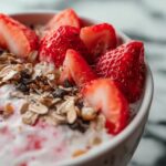 Top your oats with extra fresh strawberries and your favorite crunchy topping like sliced almonds or granola. This final layer adds texture and makes every bite interesting and delightful.
