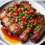 Slice the pork into medallions and sprinkle with chopped green onions and sesame seeds. These simple garnishes add freshness and a delightful crunch that make every bite exciting.