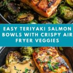 Delicious Teriyaki Salmon Bowls featuring tender air-fried salmon fillets glazed with savory teriyaki sauce, accompanied by crispy broccoli florets, fresh cucumber matchsticks, and aromatic herbs served over warm long-grain white rice. A wholesome and flavorful meal ready in just 25 minutes.