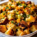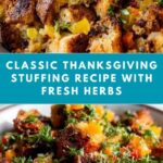This classic Thanksgiving Stuffing recipe features a savory blend of toasted bread, sautéed onions and celery, fresh herbs, and chicken broth, baked to a golden, crispy perfection. It’s a comforting and flavorful side dish that complements your holiday turkey beautifully.