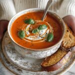 This soup pairs perfectly with crispy grilled cheese sandwiches, adding melty, buttery comfort alongside the tangy tomato. Garlic bread, a fresh green salad, or even a warm slice of sourdough also complement the flavors wonderfully, making your meal feel more complete and satisfying.
