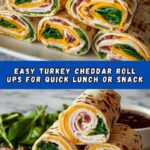 These Turkey Cheddar Lunch Roll Ups are a quick, no-cook meal perfect for a healthy lunch or snack. Featuring a flavorful cream cheese spread, tender turkey breast, sharp cheddar, and fresh spinach wrapped in soft flour tortillas, they offer a balanced combination of protein and greens with creamy and tangy flavors. Easy to prepare and versatile, they can be served immediately or chilled for later.