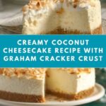 This Ultimate Coconut Cheesecake features a creamy, smooth filling made with cream cheese, coconut cream, and shredded coconut atop a buttery graham cracker crust. Baked to perfection and cooled slowly to prevent cracking, it offers a rich coconut flavor with a velvety texture, perfect for dessert lovers looking for a tropical twist on classic cheesecake.