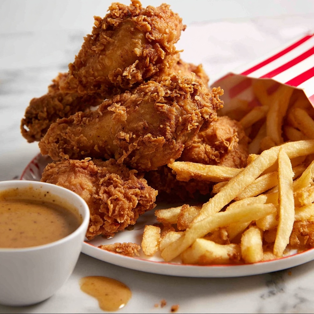 This recipe delivers ultra-craggy, crispy fried chicken with a perfectly seasoned crust and juicy interior. Using a buttermilk marinade and a well-spiced flour coating, the chicken pieces are double-dredged and deep-fried to golden perfection, resulting in a flavorful, crunchy coating that stays crispy and satisfying.