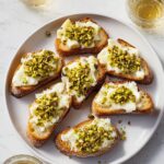 This recipe keeps things straightforward with a handful of ingredients that each shine in their own right. From the nutty roasted pistachios to the zesty lemon dressing and bold white cheddar, every element brings a vibrant note, texture, or a touch of indulgence to your crostini.