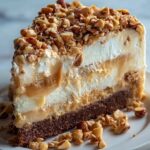 - Serve: Before serving, optionally top the cheesecake with whipped cream and chopped peanuts for added texture and decoration. Slice and enjoy the rich and creamy dessert.